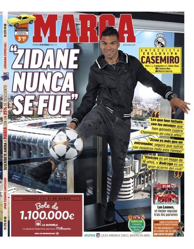 Hoy la mejor portada del día es nuestra. La magnífica entrevista a Don Álvaro Odriozola, el Puñal de La Concha, a cargo de trois mousquetaires como Ramón Álvarez de Mon, Jesús Bengechea y Athos Dumas , alcanzó un dimensión internacional que hizo inflar nuestro pecho cual palomos henchidos de orgullo. "La vuelta de Zidane es como ganar un título" es lo que significa Zizou kembali macam menang trofi, de acuerdo con el prestigioso diario malasio Harian Metro. Una historia, la de Álvaro en La Galerna, que desarrolla también para nuestro estupor el Sindonews de Indonesia como apreciamos con su Kembalinya Zidane telah menghidupkan kembali harapan para pendukung dan bagi kami ini praktis seperti memenangkan trofi, kami sangat bahagia," kata bek Madrid Alvaro Odriozola dalam sebuah wawancara dengan situs web La Galerna. Esta interesante entrevista, la nuestra y la vuestra amigos galernautas, que no fue publicada en ninguna gran cabecera bajo el amparo de ningún grupo mediático , alcanzó ayer a Yahoo Sports, a Daily Mail, Reuters India, El Universo ecuatoriano, Euronews, GivemeSports, Reuters Latino América, El Comercio, El Español, Marca, Mundo Deportivo, A Bola, ESPN etc... Una absoluta locura.
